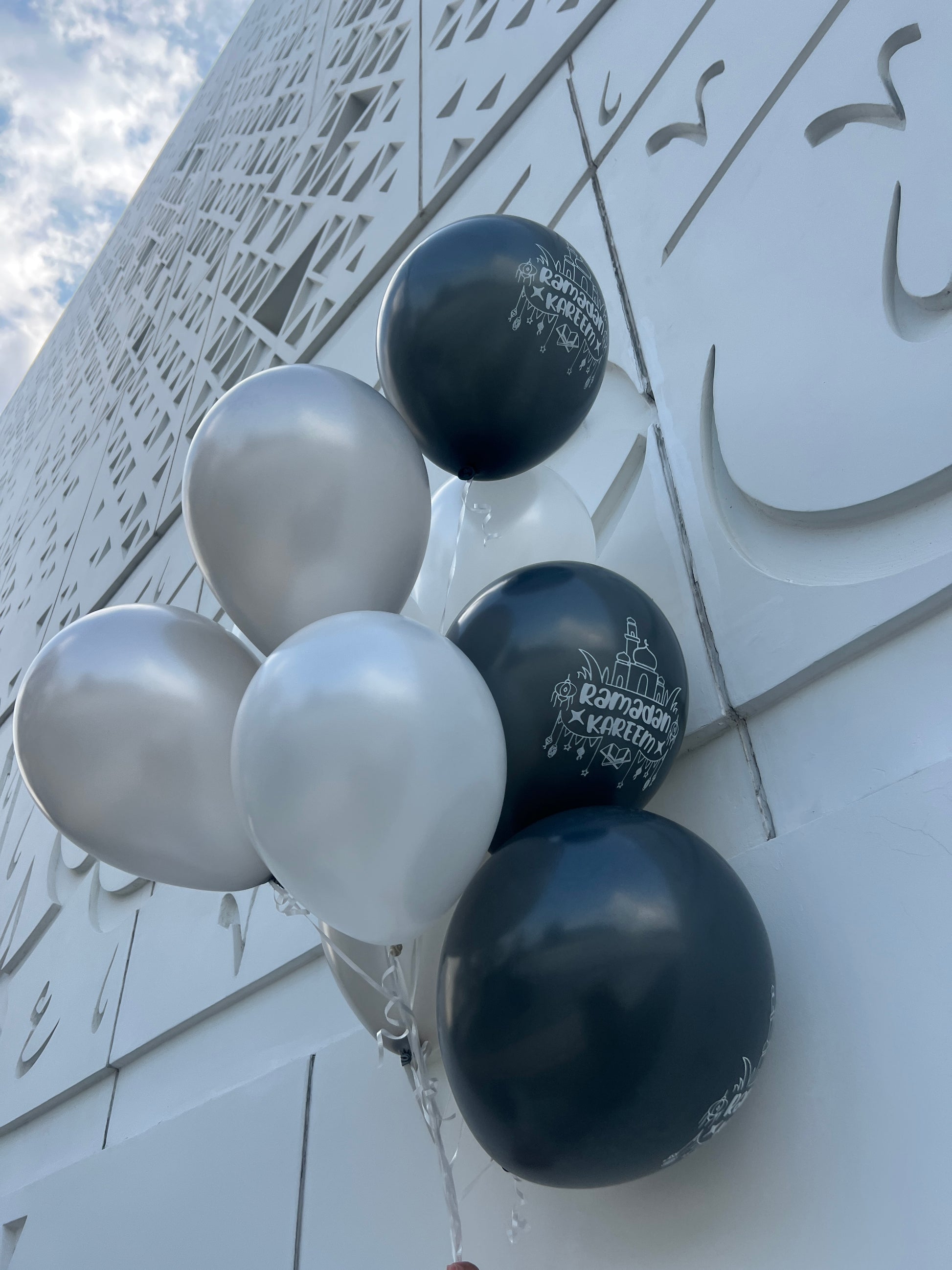 Elevate your Ramadan celebrations with our exclusive Graphite Ramadan Balloon Set. Each set includes 18 high-quality balloons, measuring 30 cm each, designed to add a touch of luxury to your festivities.